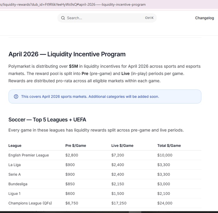 Polymarket just dropped a massive incentive for April, and if you aren’t paying attention, you’re leaving money on the table. They’ve allocated over $5M to reward Liquidity Providers (LPs) across all major sports markets.