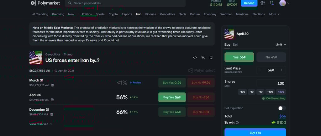 Resolution Source: Every market has a "source" (like the Associated Press or a specific crypto price feed). Always check this by clicking the "i" (info) icon.