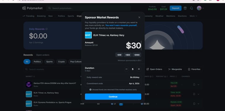 Polymarket has a Liquidity Rewards program that pays you daily in USDC just for keeping your orders in the book. It’s like earning interest on your trading capital.
